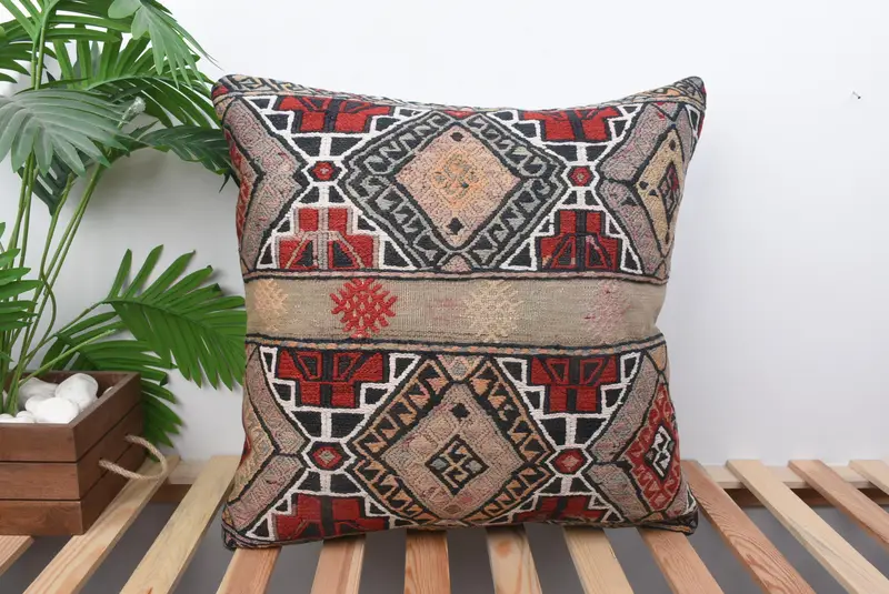 Rotes Southwestern-Wurfkissen, 22x22 besticktes Vintage-Kissen