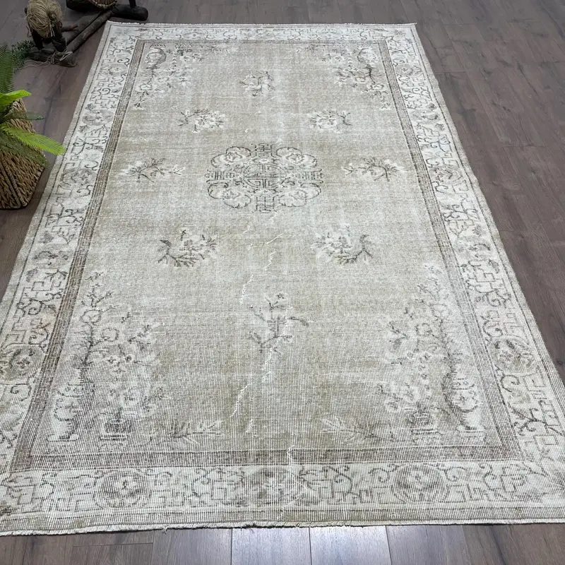 Eleganter beige-brauner Teppich, 5,7 x 9,2 Fuß, gestreift, geometrisch