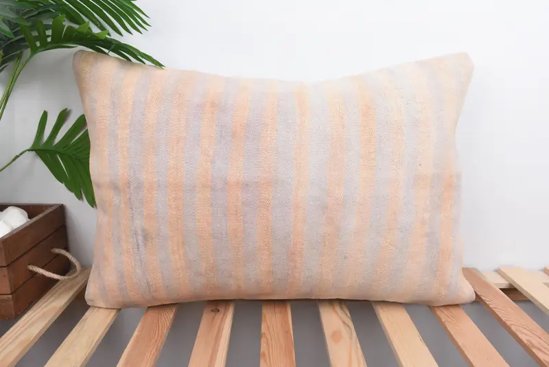 Beige & Orange gestreiftes Kissen, handgefertigtes besticktes Kissen