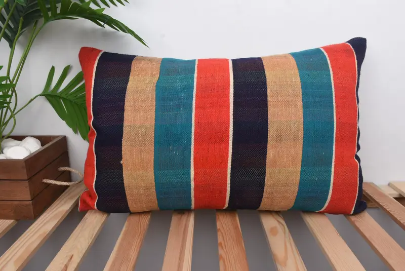 Rot-grün gestreiftes Kissen, handgefertigtes besticktes Kissen