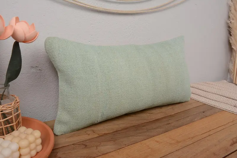 Handgefertigtes südwestliches grünes Kelim-Wurfkissen, 12x24 Vintage-Kissen
