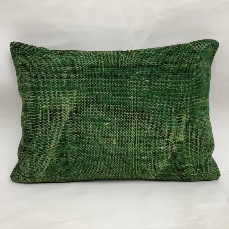 Grünes und braunes Southwestern-Wurfkissen, handgefertigtes Kissen aus Leinen und Wolle