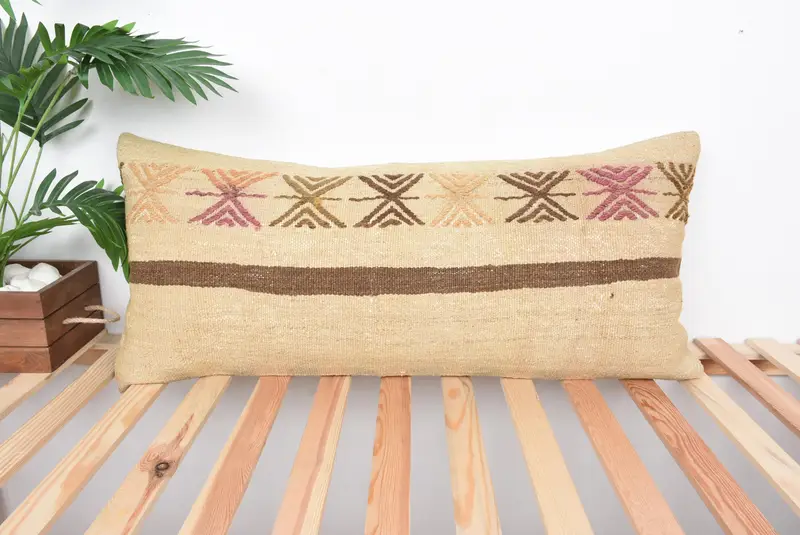 Geometrisches Kissen in Beige und Braun, handgefertigtes rechteckiges Kissen