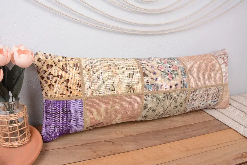 Patchwork-Wurfkissen in Beige und Bronze, besticktes rechteckiges Kissen
