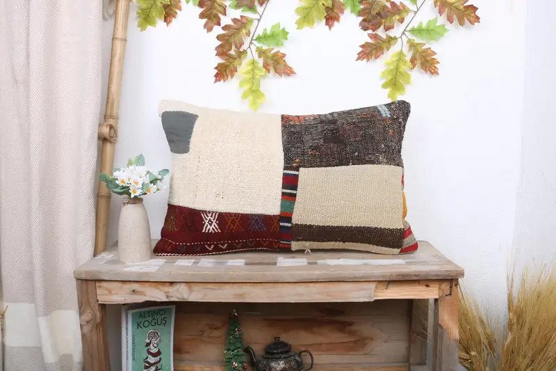 Besticktes rechteckiges Wurfkissen, 16 x 24 Zoll Vintage-Kissen