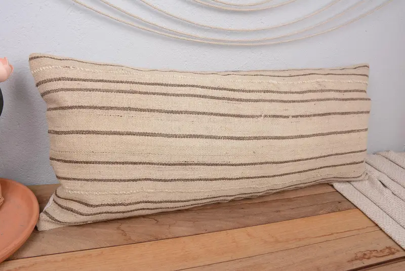 Beige & Braun gestreiftes Kissen, handgefertigtes besticktes 16x36 Wurfkissen