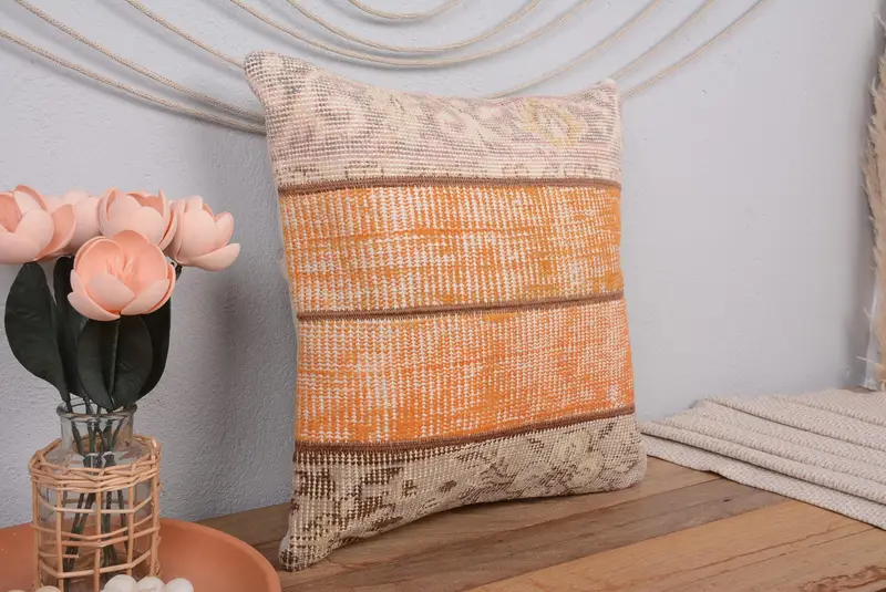 Orange & Beige Patchwork Kissen, handgemachtes besticktes Kissen