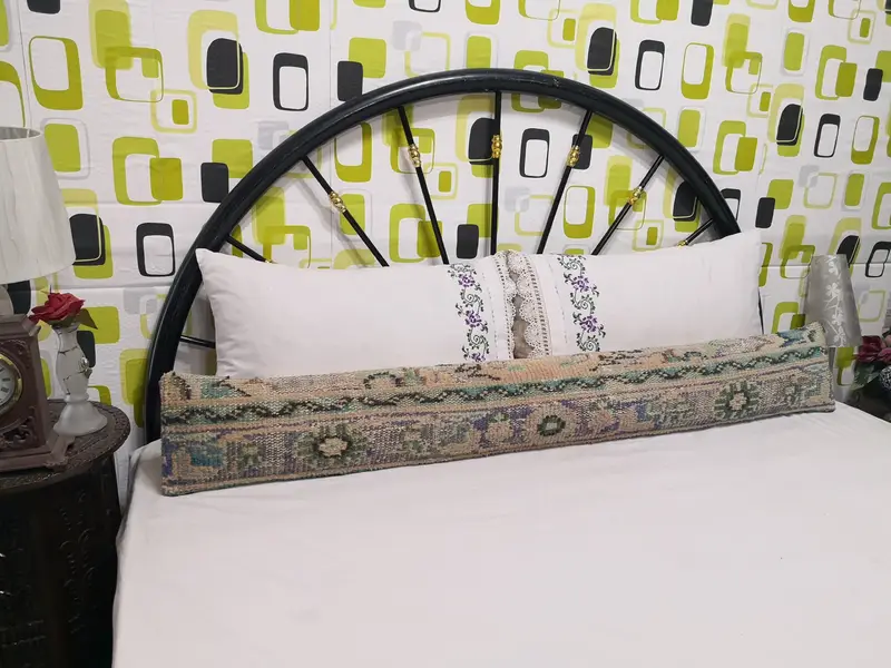 Handgefertigtes Wollkissen mit geometrischem Muster, Vintage-Rechteckkissen