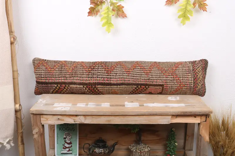 Handgefertigtes Southwestern-Wurfkissen, braunes und orangefarbenes Leinenkissen