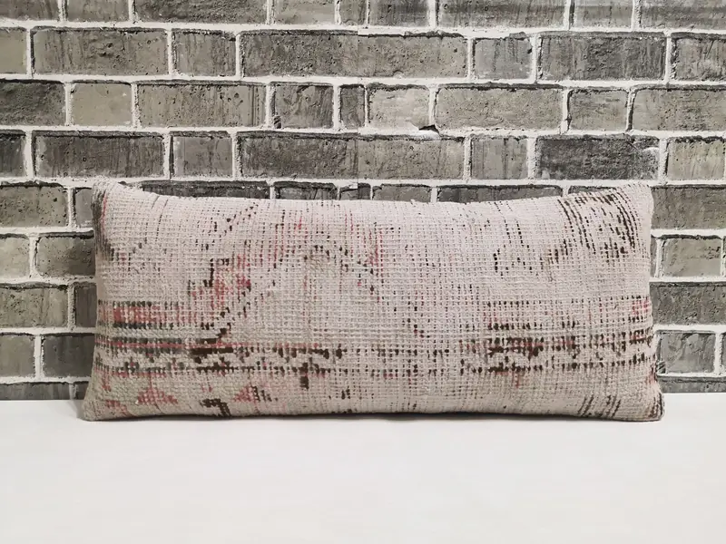 Handgefertigtes besticktes Wollkissen, geometrisches Vintage-Design-Wurfkissen