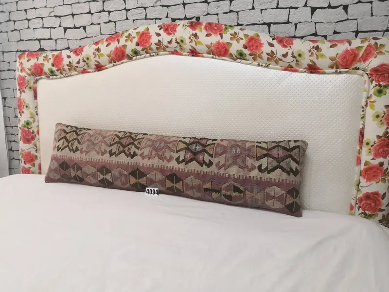 Geometrisch gemustertes Wollkissen, handgefertigtes besticktes Rechteckkissen