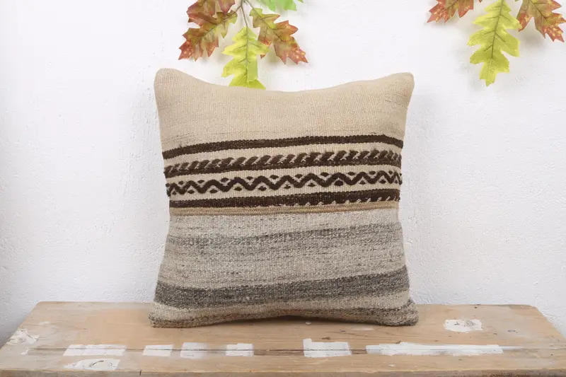 Besticktes beige-braun gestreiftes Kissen, vielseitiges 16x16 Wurfkissen