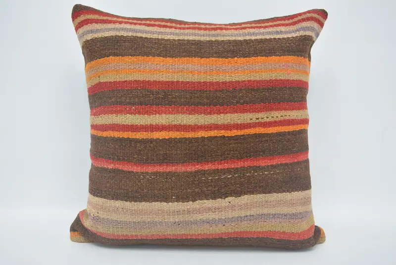 Handgefertigtes gestreiftes Kissen, 22x22 braunes und rotes Kissen