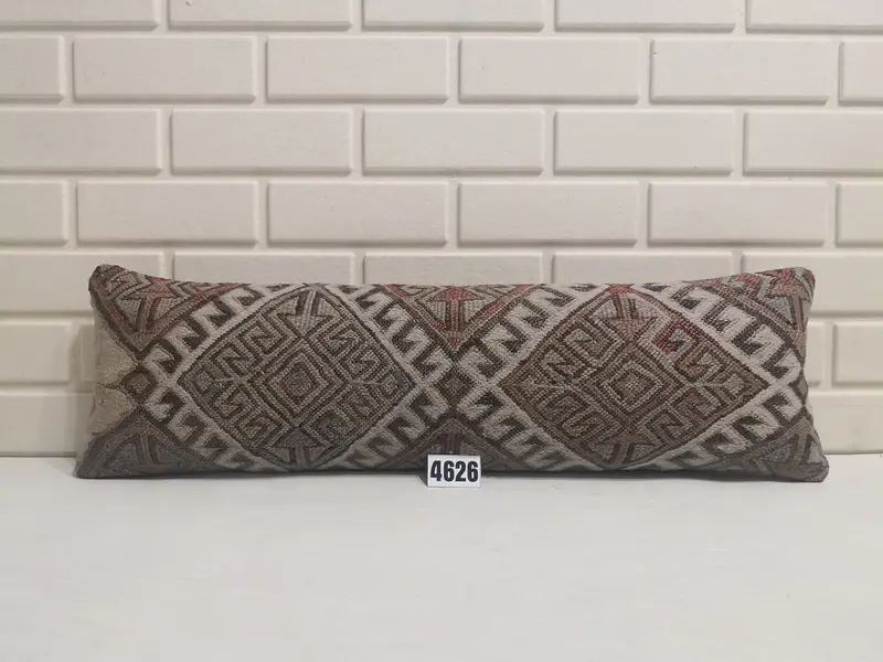 Geometrisches orangefarbenes und graues rechteckiges Kissen, handgefertigtes Kelimkissen
