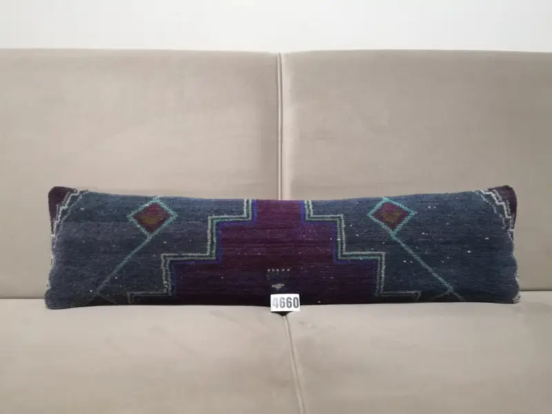 Handgefertigtes Wollkissen mit geometrischem Muster, Vintage-Rechteckkissen
