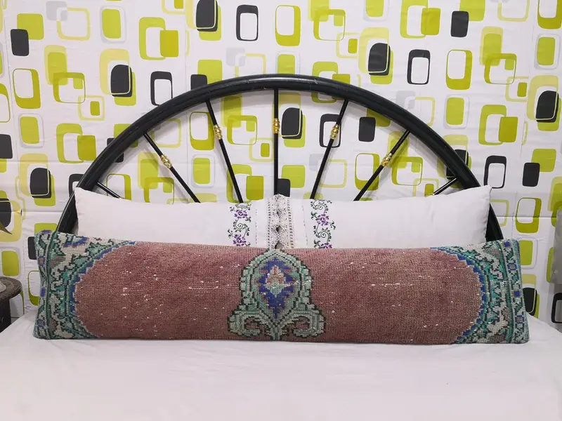 Blaues und roségoldenes rechteckiges Kissen, handgefertigtes geometrisches Kissen