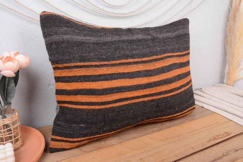 Orange und schwarz gestreiftes Kissen, 20x28 besticktes Wurfkissen