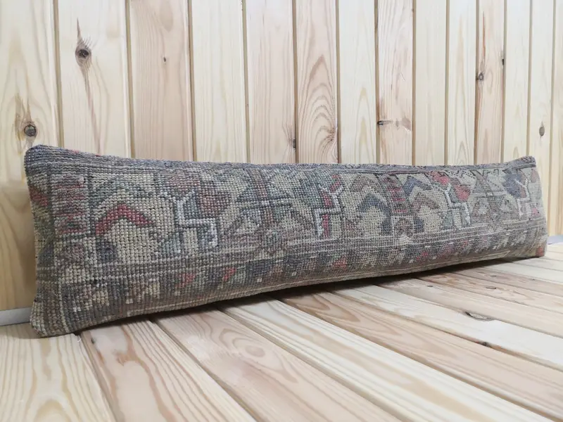 Handgefertigtes besticktes Wollkissen, geometrisches Vintage-Kissen