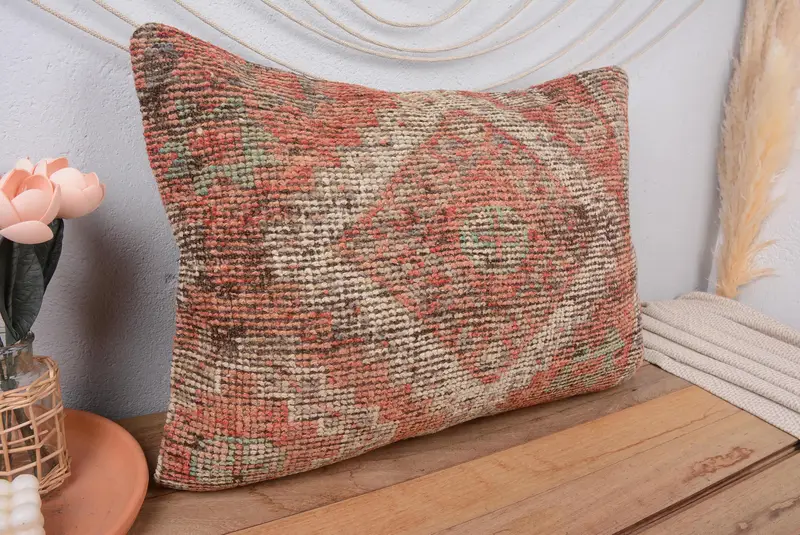 Gesticktes Southwestern Orange & Beige Kissen, vielseitiges 20x28 Wurfkissen