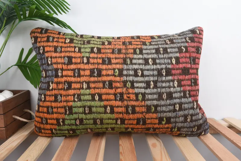 Oranges besticktes Kissen im Südwesten, handgemachtes Vintage-Wurfkissen