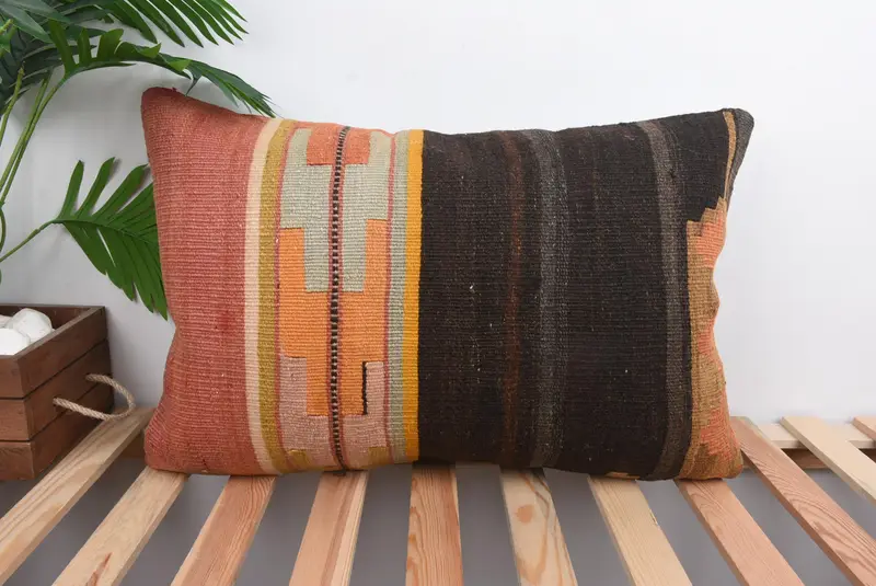 Orange & Braun besticktes Wurfkissen, 16x24 handgemachtes Kissen