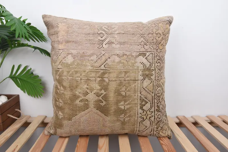 Braunes und beiges Southwestern-Wurfkissen, 24x24 besticktes Kissen