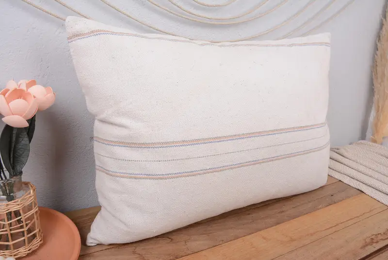 Beige & Orange gestreiftes Kissen, handgefertigtes besticktes Kissen