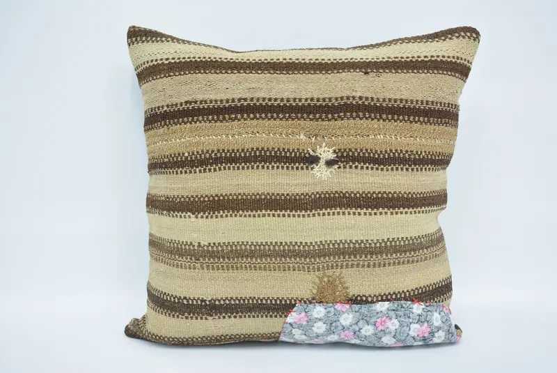 Beige & braun gestreiftes Wurfkissen, vielseitiges handgefertigtes Kissen