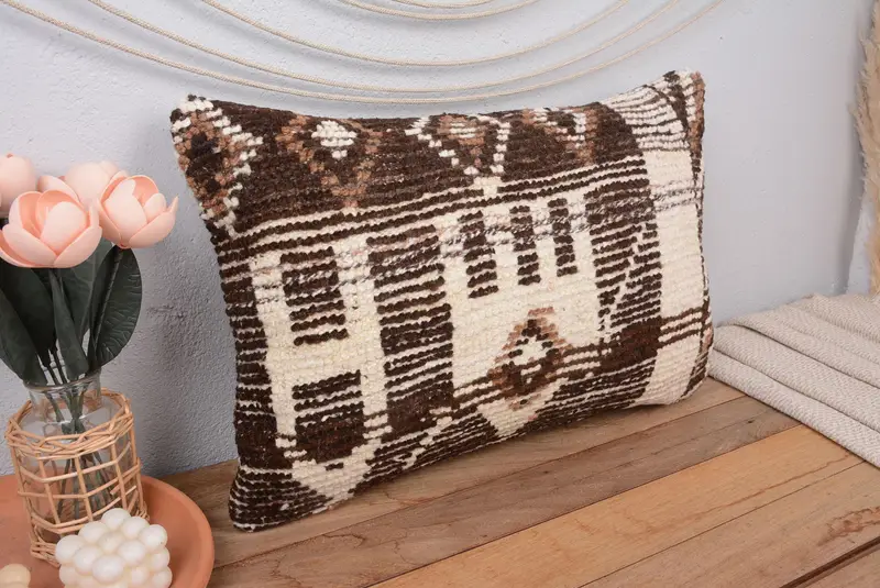 Beigefarbenes Southwestern-Wurfkissen, handgefertigtes besticktes Kissen, 16x24