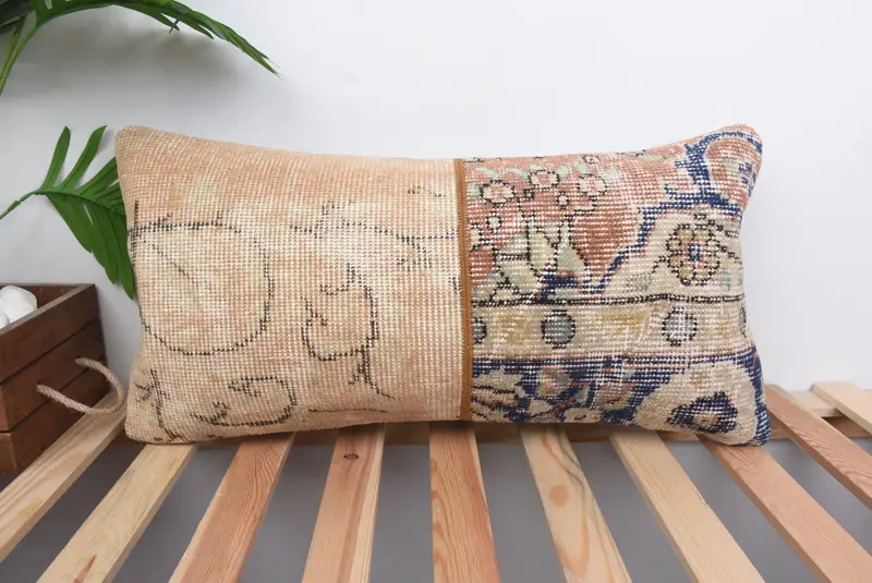 Orange & Bronze Patchwork Kissen, handgemachtes Rechteckkissen