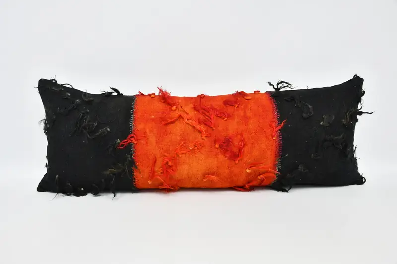 Handgefertigtes gestreiftes Kissen, 16x42 orangefarbenes Kissen mit Vintage-Charme, Wurfkissen