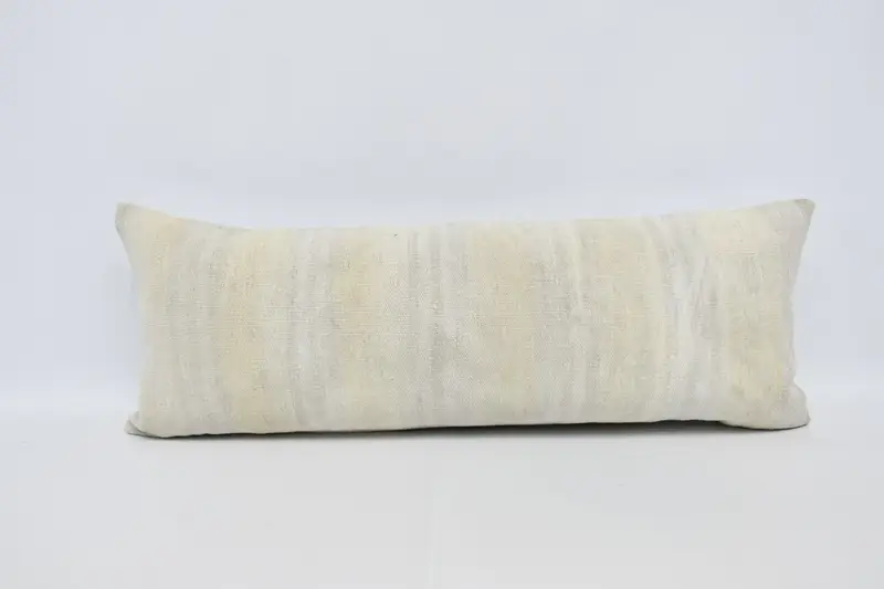 Handgefertigtes Kissen aus Hanf und Baumwolle, 16 x 42 besticktes rechteckiges Kissen