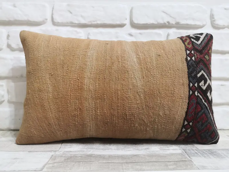 Handgefertigtes besticktes Kissen, abstraktes rechteckiges Kissen in Beige und Rot