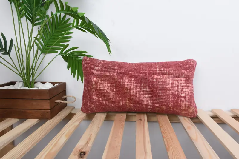 Handgefertigtes südwestlich besticktes Kissen, rotes Vintage-Wurfkissen