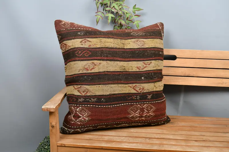 Gesticktes Braun- und Beige-Wurfkissen, Vintage-Streifenkissen