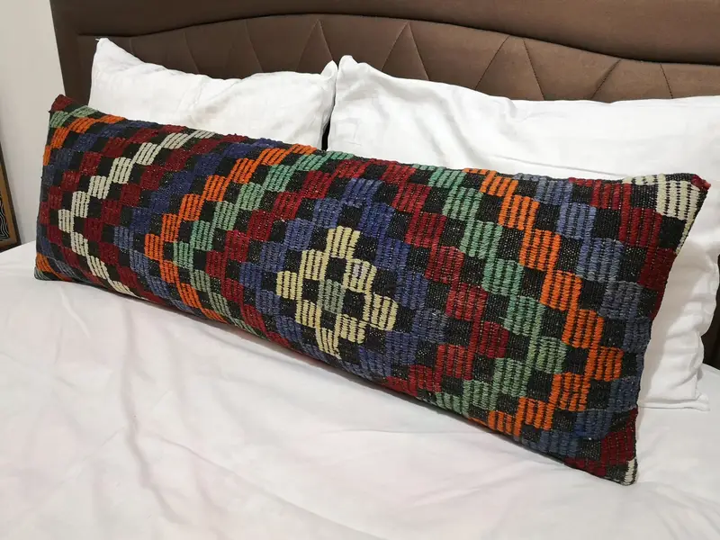 Handgefertigtes Kelim-Wurfkissen in Blau und Grün, 40,6 x 121,9 cm, rechteckig