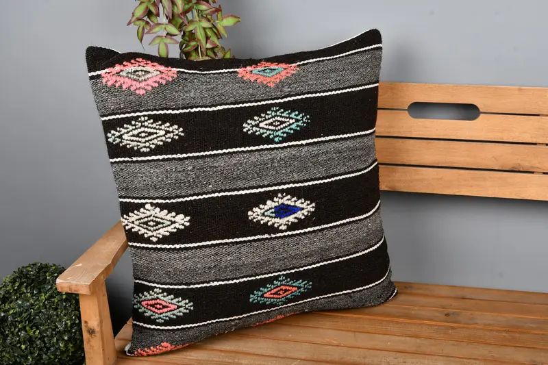 Handgefertigtes braun-rosa besticktes Kissen, Vintage-Wurfkissen