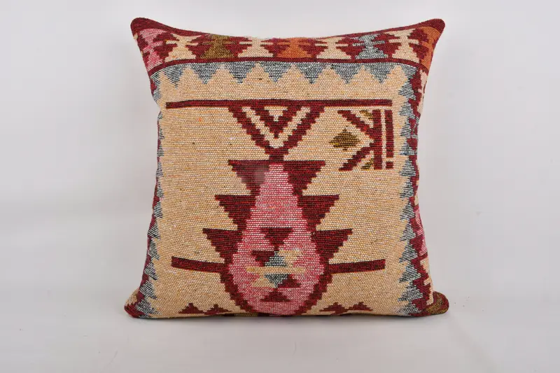 Rot & Beige besticktes Kissen, 28x28 handgemachtes Wurfkissen