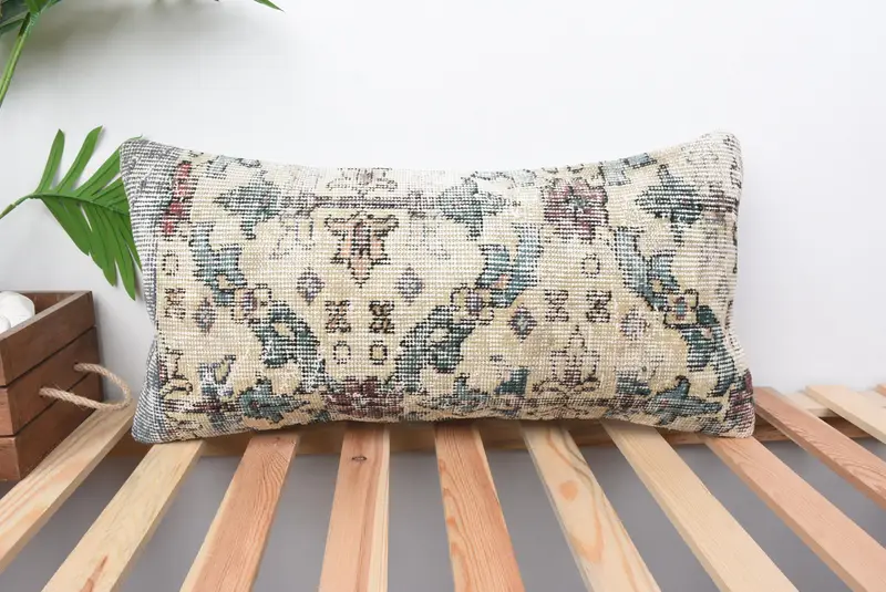 Beige-graues Patchwork-Wurfkissen, 12x24 besticktes Kissen