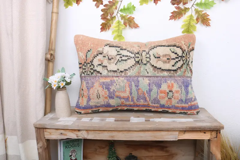 Blaues und beiges Patchwork-Kissen, handgefertigtes besticktes Kissen