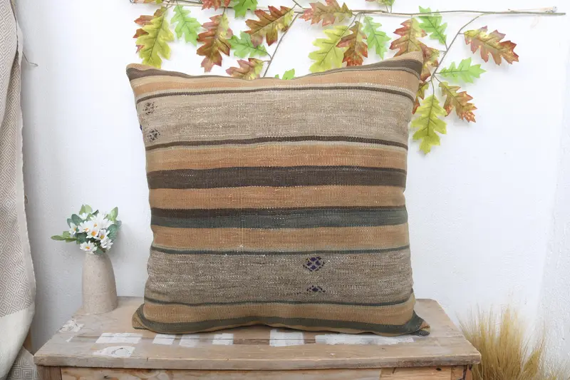 Braun & Beige gestreiftes Wurfkissen, 24x24 besticktes Kissen