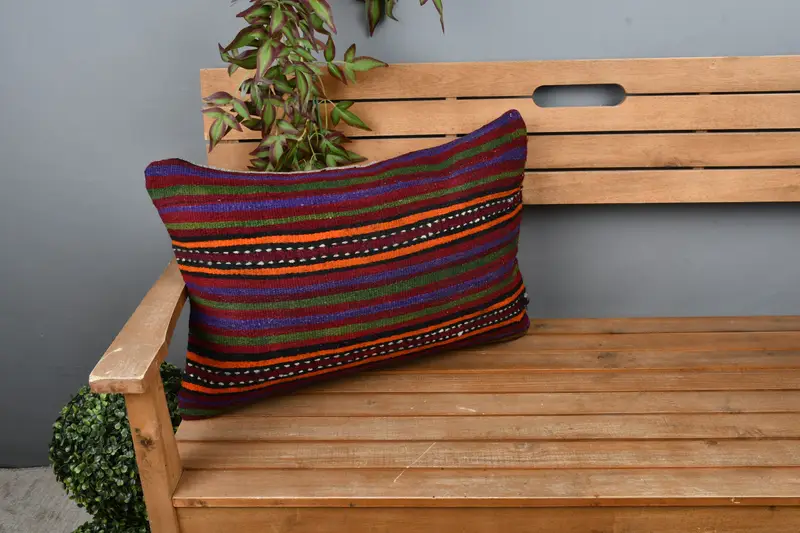 Blau & Orange gestreiftes Kissen, besticktes Wurfkissen