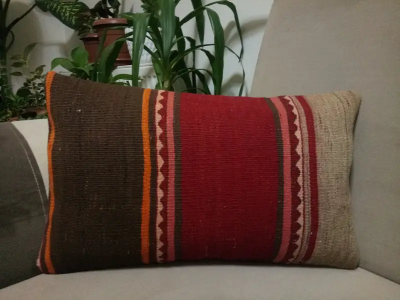 Rot-schwarz gestreiftes Wollkissen, 20 x 12 Zoll großes rechteckiges Kissen