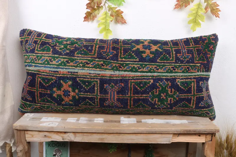 Blaues und rotes Patchwork-Wurfkissen, handgefertigtes besticktes Kissen