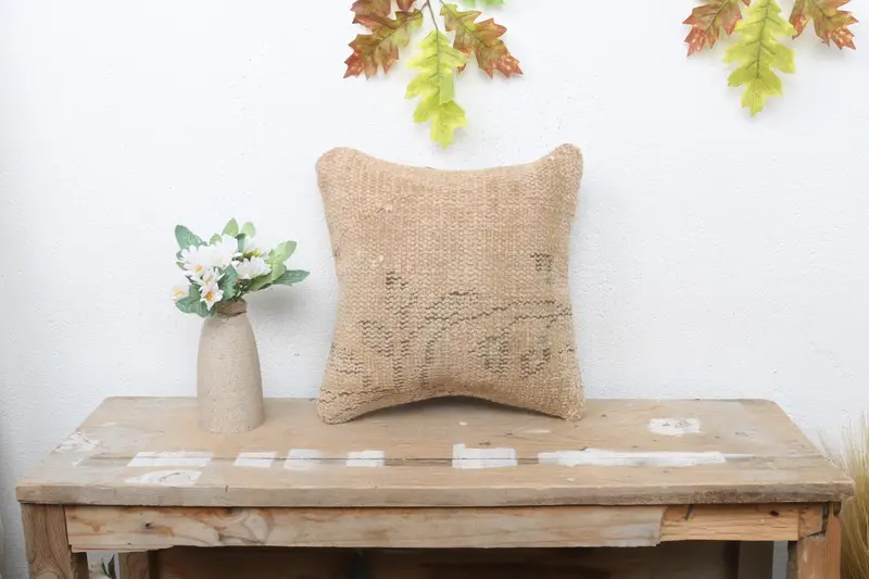 Handgefertigtes Beige & Braunes Blumenkissen, 12x12 Vintage Kissen