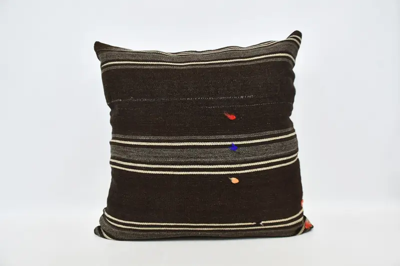 32x32 schwarz gestreiftes Kissen, Vintage besticktes Kissen