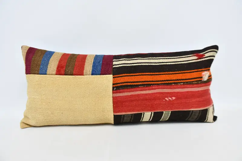 Beige & rotes Southwestern Wurfkissen, handgemachtes Rechteckkissen