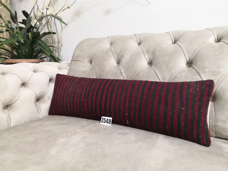 Rechteckiges rot-schwarz gestreiftes Wollkissen, Dekokissen