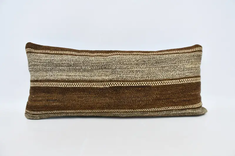 Beige & braun gestreiftes Wurfkissen, 16x36 handgemachtes Kissen