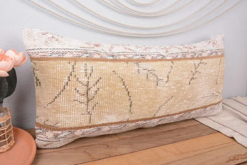 Besticktes Patchwork-Kissen in Beige und Braun, 16x36 handgemachtes Wurfkissen